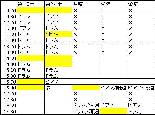 土曜日17:00以降をご希望の方は